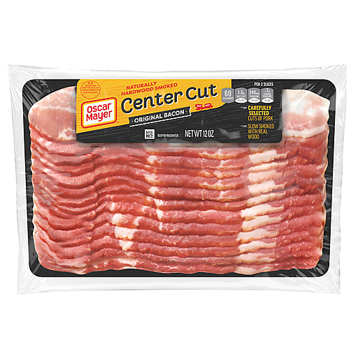 Everything is better with bacon. Oscar Mayer Center Cut Original Bacon Slices come from carefully selected cuts of pork for irresistible flavor. Our delicious center cut bacon is hand-trimmed and slow smoked with real wood. Elevate a breakfast sandwich or a classic BLT with our naturally hardwood smoked bacon. Fry a few slices for bacon and eggs, or chop it up and add center cut smoked bacon to any of your favorite dishes. Crumble a slice into bacon bits or try pairing with a breakfast sausage in the morning. Oscar Mayer bacon is a delicious choice for those following a low carb lifestyle. Keep our 12 ounce vacuum sealed package with about 18 slices of bacon refrigerated and use within seven days once opened.
