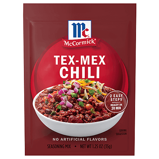 A bold blend of McCormick spices, Tex-Mex Chili Seasoning Mix makes family-favorite chili every single time. Our signature mix is crafted with chili pepper, jalapeño pepper, onion, garlic and bell peppers, and contains no added MSG or artificial flavors.