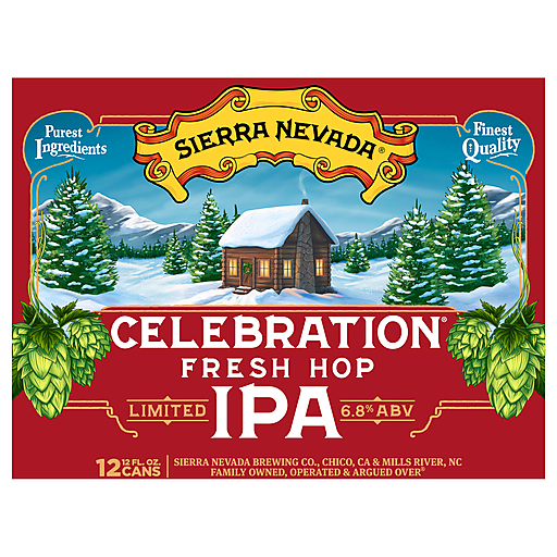 While other holiday beers go heavy on spice and sweetness, Celebration wields fresh hops—the first harvests of the season—toward its complex and cabin-cozy notes of pine, citrus, and malty caramel. The start of Celebration season is a festive event. Once the first fresh hops arrive from harvest, the party begins! We first brewed Celebration in 1981, blazing the path for American-style IPAs and offering a new take on holiday beers, which are often spiced and sweet. Famous for its citrus and pine aromas, Celebration is bold and intense, featuring Cascade, Centennial and Chinook hops—honoring everything we love at Sierra Nevada. It's a wintertime classic for more than 40 years, and your new tradition starting now.
