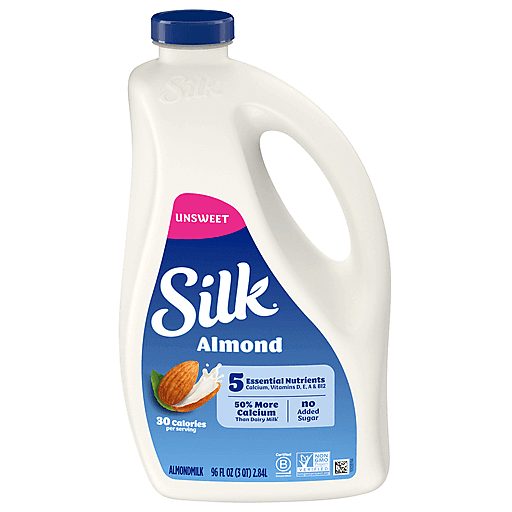 Treat yourself to this smooth and seriously creamy Silk Unsweet Almondmilk. Enjoy all of the taste with 0 grams of sugar per serving*. Made with three kinds of almonds grown by Mother Nature and picked at the peak of ripeness, this lactose free milk has a perfect mix of quality and flavor. Plus, its smooth flavor makes it an extraordinary tasting plant based milk that you can use throughout your day. It tastes great in a bowl of cereal or in your favorite smoothies. Every serving of this non dairy milk has Vitamin D to help support strong bones and 50% more calcium than dairy milk**. Silk Almondmilk is totally free of dairy, soy, lactose, gluten, casein, egg, and MSG. Looking for lactose free cooking or baking supplies? Silk Almondmilk makes an excellent addition to sauces and baked goods. Whether you’re making a bowl of healthy cereal, drinking straight out of a glass or enjoying a frothy coffee, trust Silk — the Original Plant Pioneer. Today Silk supports regenerative agriculture because we believe in the power of plants for people and the planet. It’s not just almondmilk, it’s Milk of the Land***. Read more about our story on our packaging. Enjoy all of the Silk products, including vegan milk, non dairy creamer and dairy free yogurt varieties. *See Nutrition Facts for sugar and calorie content. **Silk Almondmilk: 470mg of calcium per cup; reduced fat dairy milk: 309mg of calcium per cup. USDA FoodData central, 2022. ***From plants, not cows. Not nutritionally equivalent to dairy milk.